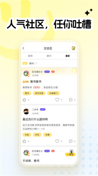 3.同好社区,交流创作写作写小说心得,互相鼓励,互暖基地。