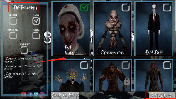 恐怖医院 是一款第一人称的冒险解谜逃脱游戏,你需要从场景中找到线索,根据线索的指引逃脱医院,并注意医院中的“怪物”,他们不会让你逃离医院并会让你变成他们中的一员。玩家将扮演游戏中的主角弗雷迪,游戏操作简单,只需要操控主角行走,站立下蹲,躲藏,游戏玩法上有四种游戏难度可供选择,可逐一加大难度。