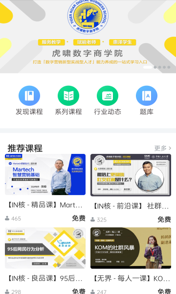 虎啸商学汇是一款专业的数字营销学习教育软件,软件拥有海量的营销知识和视频供用户自由选择观看学习,还可以根据个人的学习需求进行视频筛选,非常的实用。