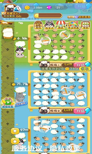 1、内置许多好玩儿的游戏,以便得到更多羊毛绒,必须多多的的培养高级羊;