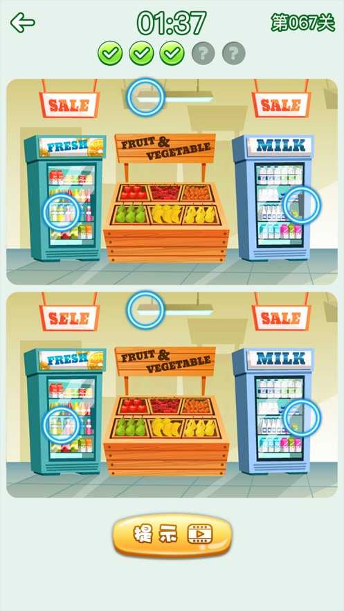 1、类似于以前的找不同,在第一关有新手指导,后面没有,不过我觉得能在加一关的新手指导会更好点。