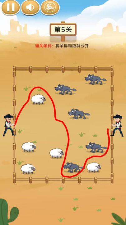 饿 狼模拟器 拯救可怜的小羊游戏 是一款非常好玩的烧脑闯关游戏,游戏中玩家需要画线拯救危险中的小羊,画线拦住所有的狼群,不让他们靠近小羊,你就能闯关成功,关卡难度逐渐提升,非常具有挑战性,推荐大家下载体验!