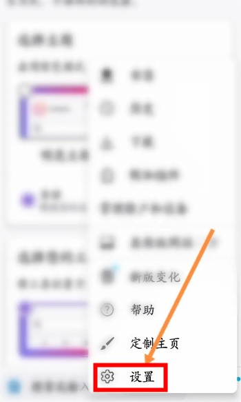 在弹出的菜单中,点击“设置”选项,进入浏览器的设置界面。