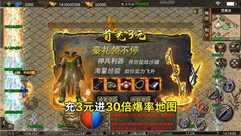 1,小投资大回报,充值钱乐趣无穷。只要你有时间,你不需要加满就可以到达顶级,体验非常公平的传奇冒险挑战。