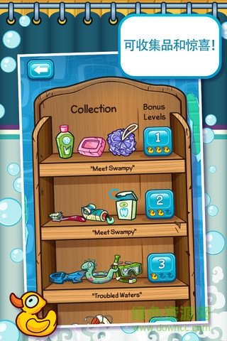 帮助小顽皮把水引到他的浴池!10个主题章节,超过200个关卡。收集小顽皮的橡皮鸭和洗澡用的物品解锁新的关卡和奖励关卡。