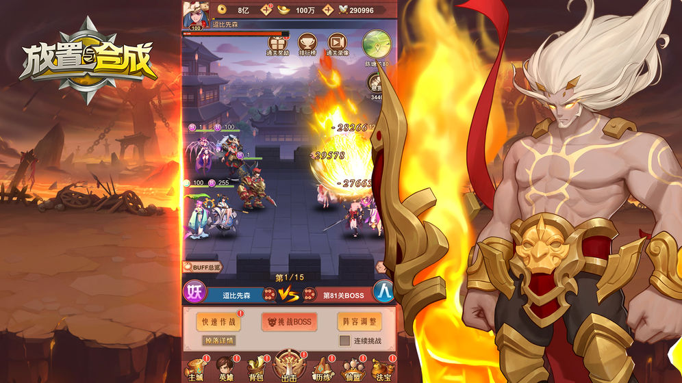 2、放置与合成游戏采用回合制玩法炫酷的技能特效占满全屏。