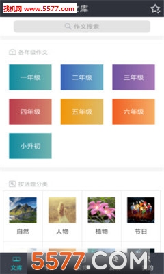 【查找】可按年级、体裁、话题分类、字数等要求来查找作文,也可以多个关键字搜索作文;