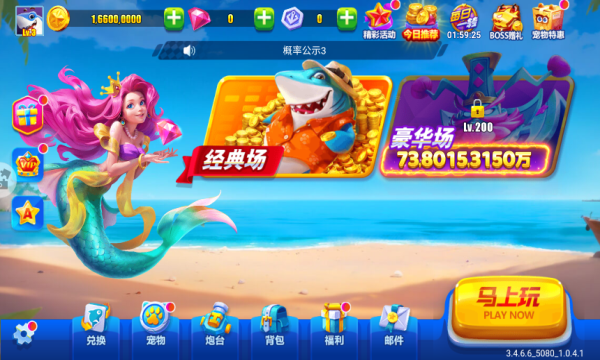 1、华丽鱼阵,神秘boss,一炮爆机变富豪。
