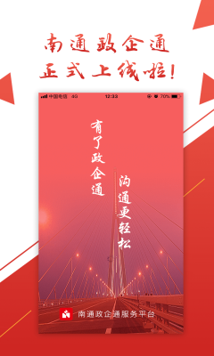 南通政企通app欢迎下载,为加强政府与各大企业之间的沟通效率,南通政府特别研发了政企通,为政府与企业架起一座沟通的桥梁,企业能第一时间通过软件了解最新的政策或经贸动态,充分提高双方的工作效率。
