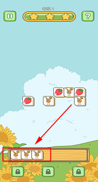 当场面上没有能够达成3消的卡牌时,我们可以观察位于下层暂时无法使用的卡牌,在点击上层卡牌后,下方的卡牌便可以使用了,这样我们就能消除一组草莓,但是在使用这个技巧时要避免手中无用卡牌堆积起来最终导致游戏失败。