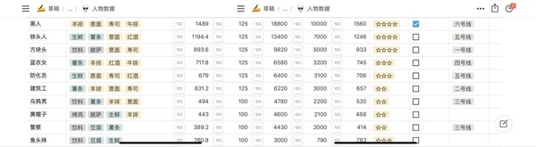 一方面,人物每餐价格、成本会巨幅波动,我没体现在表格内。