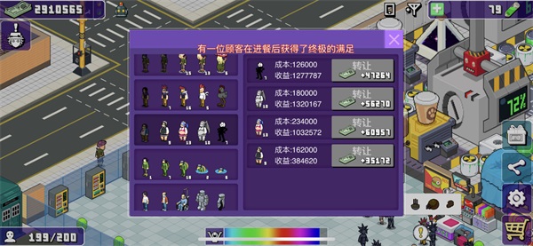 1. 电话亭刷新的人物,和在生产线上的机器相关(比如,有汉堡机器,那就会刷出很多低级人物)