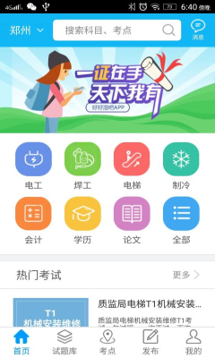 专业试题,轻松考证。细致的分类,全面的考题,每天玩转十分钟,学习考证工作那都不是事。完全的仿真考试,强大的团队帮你解决疑惑,轻松过关。上传试题,帮人解答,轻松结交好友,赚取金币。