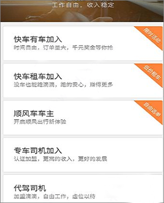 3、我们根据自己符合的要求选择适合的选项注册,下面以快车有车加入为例。