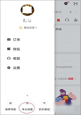 1、在个人中心中找到车主招募,如图红色标记处,点击进入。