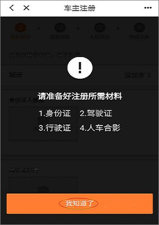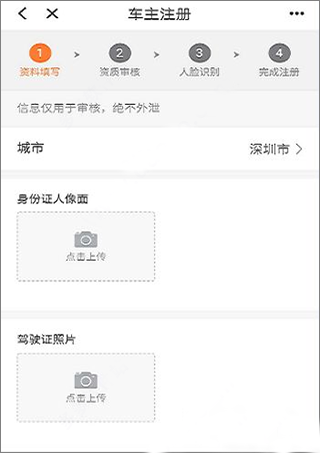 4、按照要求提交身份证、驾驶证、行驶证、人车合影资料,提交保存资料等待审核。