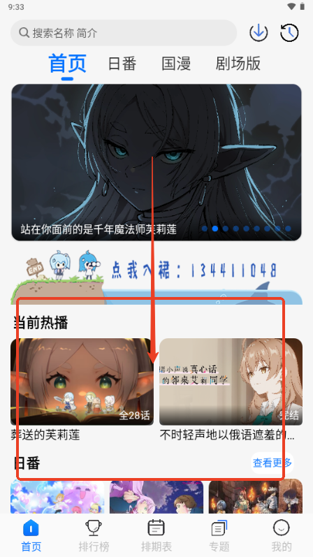 3、可以看到当前热播的动漫内容和一些日漫内容;