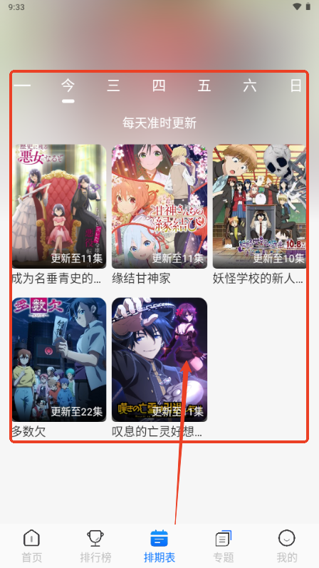 5、排期表可以查看到每日更新动漫的情况,不仅仅是实时更新,一些老动漫上架也会从这里放出;
