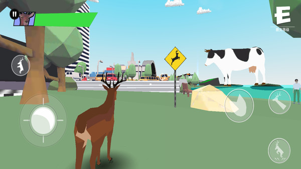 非常疯狂的鹿是一款恶搞风格的休闲游戏,扮演一只沙雕鹿,体验一个不正常的生活,这个鹿的行为非常奇葩,还可以站在走路哦,看起来都非常搞笑的,在这个沙雕的世界中,这里的体验将会超开心的。你的所作所为都可以去破坏这个世界,玩法超自由,和沙雕鹿一起毁灭世界,将这个和平的小镇在游戏中破坏,各种沙雕搞笑的行为,在这份体验中收获更多乐趣。