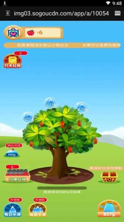 2、每日完成任务还可以获得红包奖励,闲暇时种树浇水可以收获果实,成熟后还可以兑换水果包邮到家;