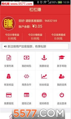 杠杠赚app是一款便捷的手机阅读赚钱软件,点击单价0.08元,转发还有收益,邀请还有还有一元奖励,两级好友30%提成,3元提现当天到账,旨在让你每天都有收益,心动就来下载吧!