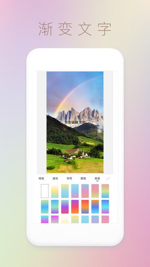 文字图片秀 是很好用的图片处理app,大家平时喜欢发朋友圈的话可以安装这个工具,随时随地都能对图片进行处理,比如说在上面添加各种文字, 艺术字体 、气泡文字、渐变文字等等都能选择,还提供超多文案模板供大家挑选。