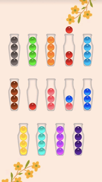 轻松有趣的 颜色分类游戏 ,不仅益智健脑,还能助你轻松缓解压力 !点击试管,倾倒试管中的球体,将试管中装满同一颜色球体即可需要注意的是:只有相同颜色的球体才可以互相倾倒入试管内!