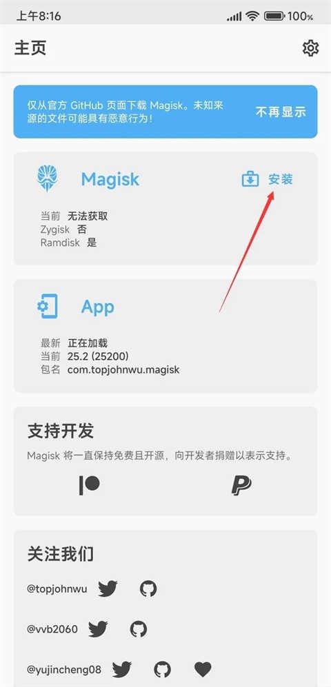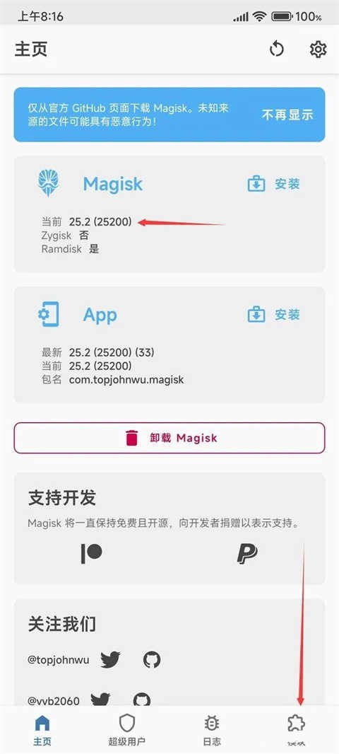 7、如果您已经安装了Magisk最新版,强烈建议直接通过Magisk Manager最新版进行升级。