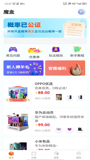 - 用户可以自由的在线购买自己比较喜欢的一些优质的盲盒和商品,在这里的各种盲盒资源都是非常的优质。