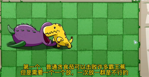 2、第一个,普通贪食茄可以击败许多霸王蕉,但是需要一个一个放,一次放一群是不行的。
