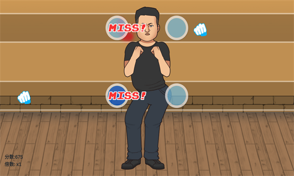 2、玩家需要根据游戏中的音乐节奏,通过控制角色的动作,在正确定时进行闪避动作,躲避飞来的拳头。只有在正确的节奏下完成闪避动作,才能顺利通过关卡。