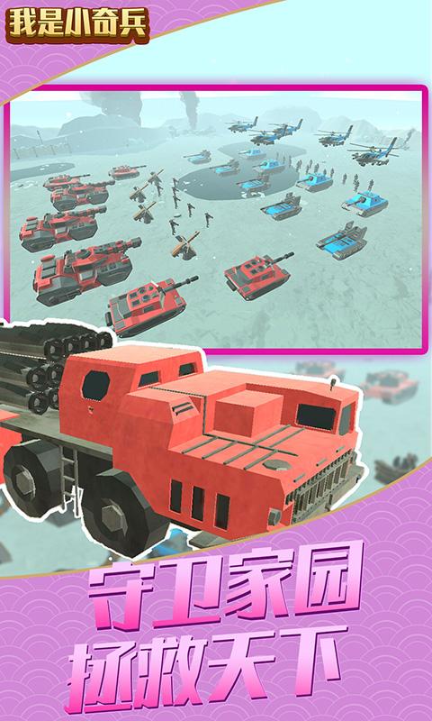 我是小奇兵以最恢弘的现代化军事战场,给予你视觉上的放松,让身心体感完全投入到这场旷世之战中,身为统率三军的指挥官,你不仅能够对地面部队的任何兵种发起各种命令,还能让海空两军为你提供最有利的后方支援!这款游戏最大的吸引点在于,它虽然拥有简约的画面,但是兵种以及载具、军事战备的种类相当丰富,从陆地装甲战车,陆军机器人到隐形战机应有尽有,海量兵种由你自由规划部署,只要下达命令,三军将会共同听候你的派遣,不论你是技术策略流还是人海流忠实党,都能够在这款游戏中玩出畅快。