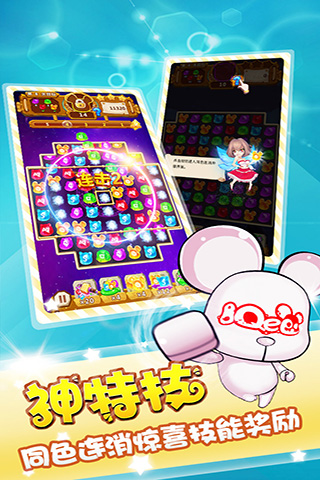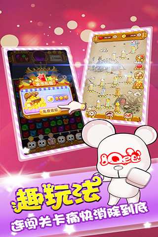 开心熊消消消游戏 是一款消除 休闲 益智游戏 ,全新游戏玩法,用你的智慧消除一切物品来闯关,还有各种特技可以使用,取得最高分数,带给你更加精彩的消消游戏,你还在等什么,赶快到2265安卓网下载体验吧!