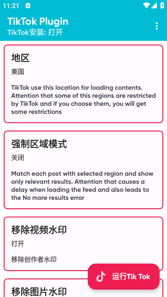 TikTok Plugin是一款能够帮助用户换区的软件,这款软件是配合tiktok一起使用的,使用该软件就去去除视频中的水印和广告,可以让用户轻松地去操作,操作的时候就会很简单,能够随时免费下载安装软件。