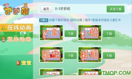 巴巴熊儿童折纸动画-儿歌大全100首宝宝睡前小故事宝宝学唱儿歌英文儿歌童谣经典益智儿歌睡前故事精选安徒生格林童话早教启蒙必备歌谣儿童歌曲动画视频成语寓言有声故事识字识物识拼音唐诗三百首折纸三字经