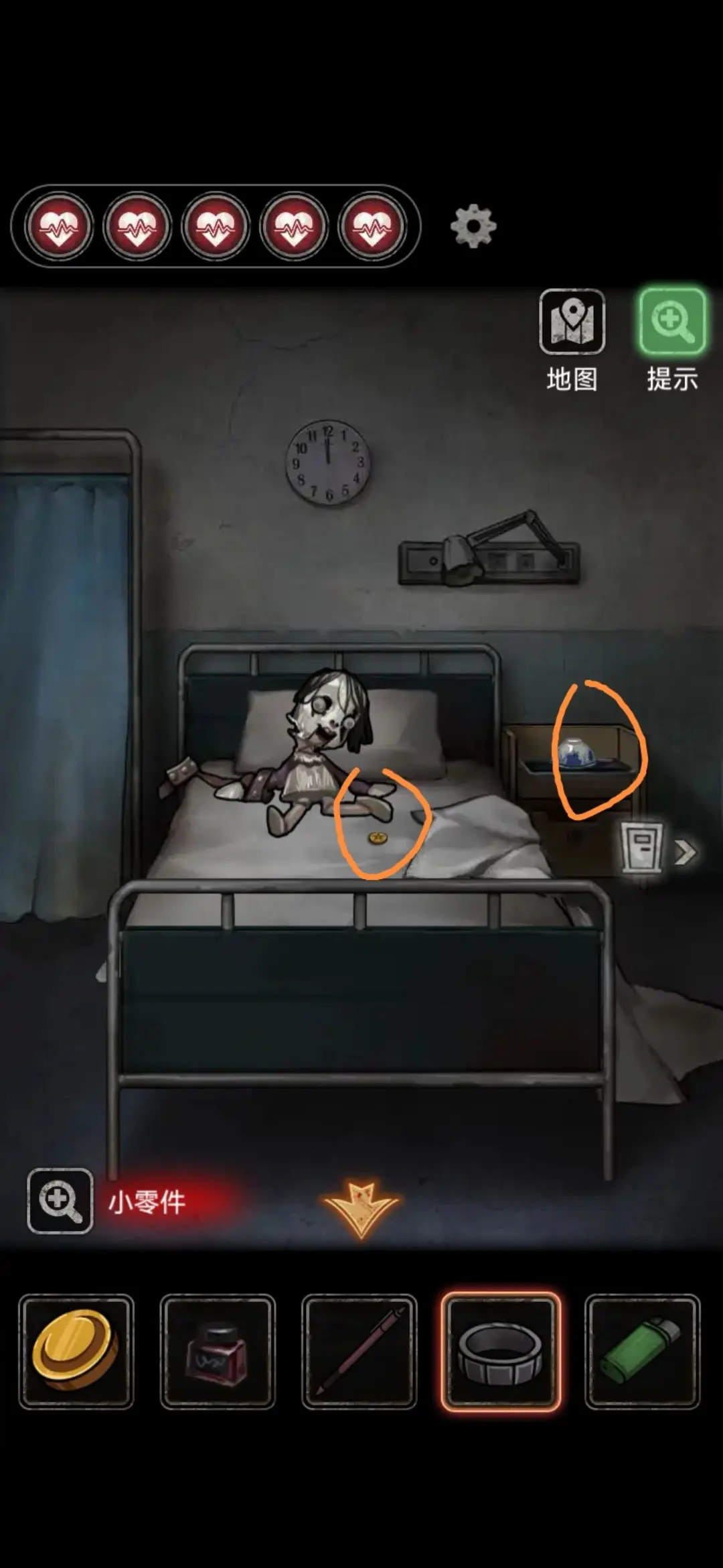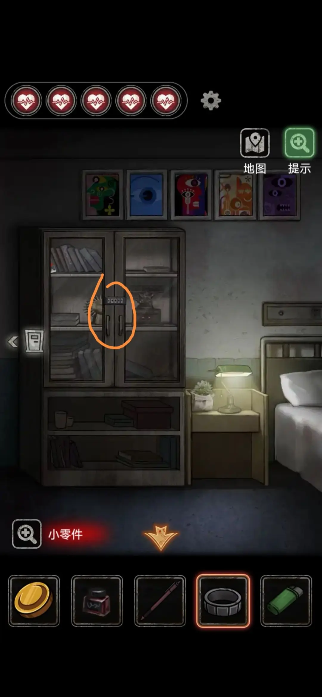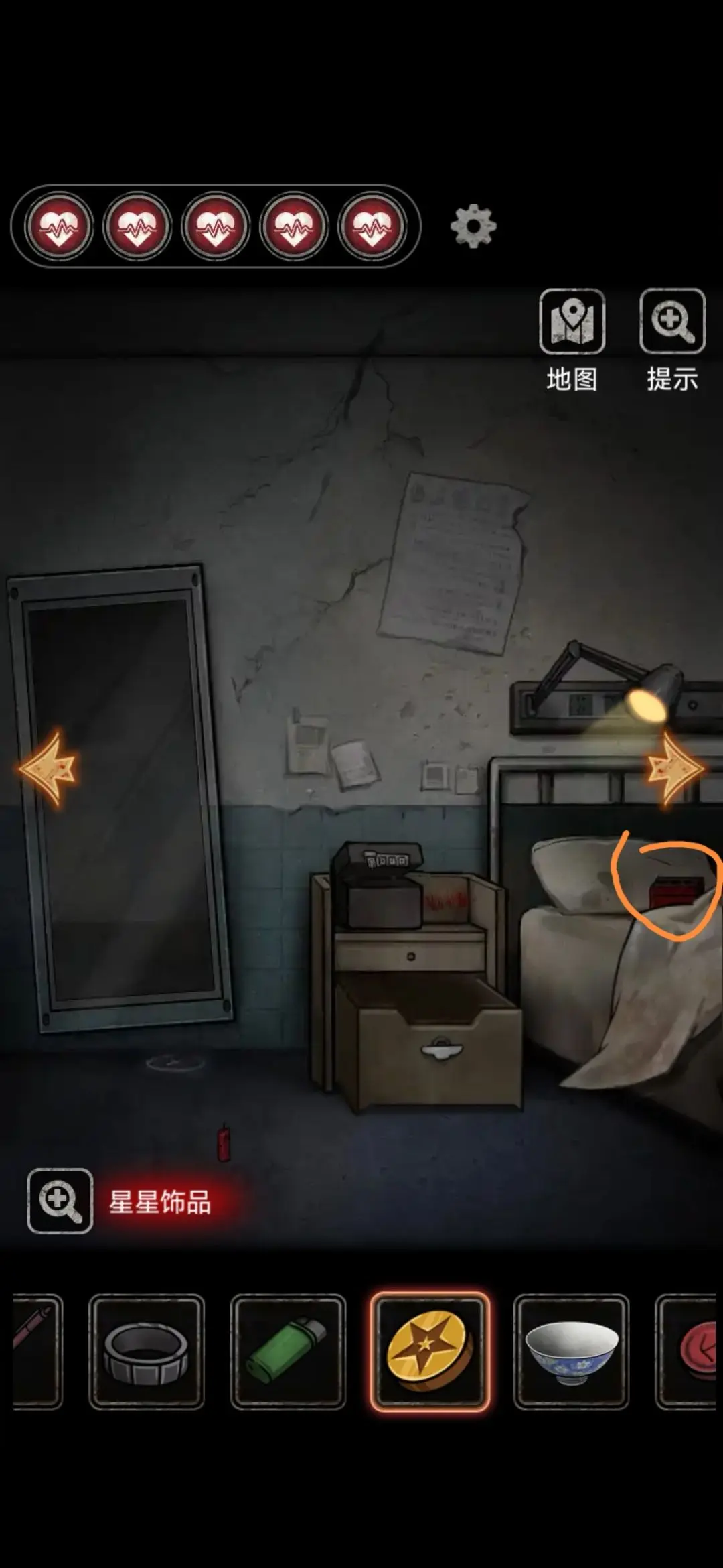 回到2011房间,从床头柜点击得到月亮饰品,掀开被子露出箱子,把月亮太阳星星视频按顺序放入凹槽中打开箱子得到罩子