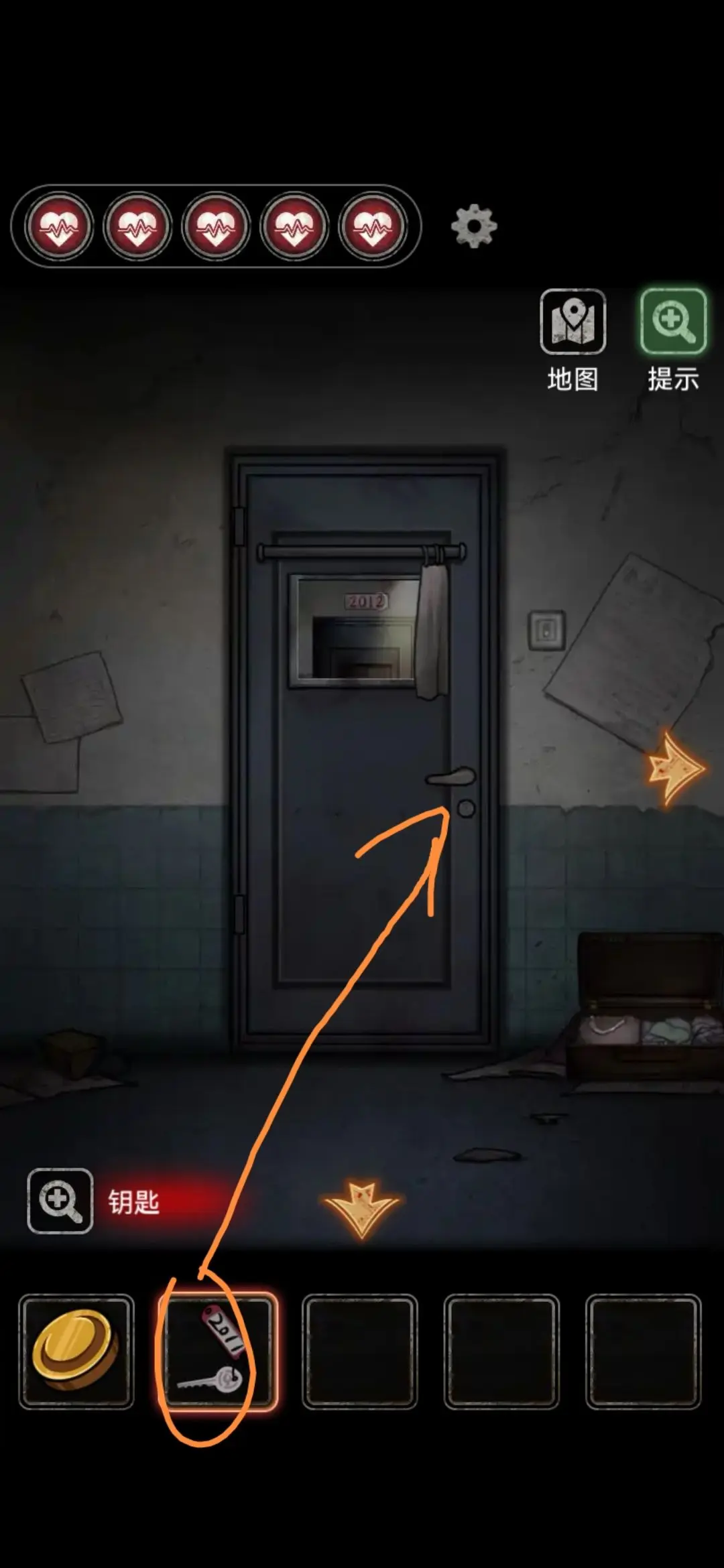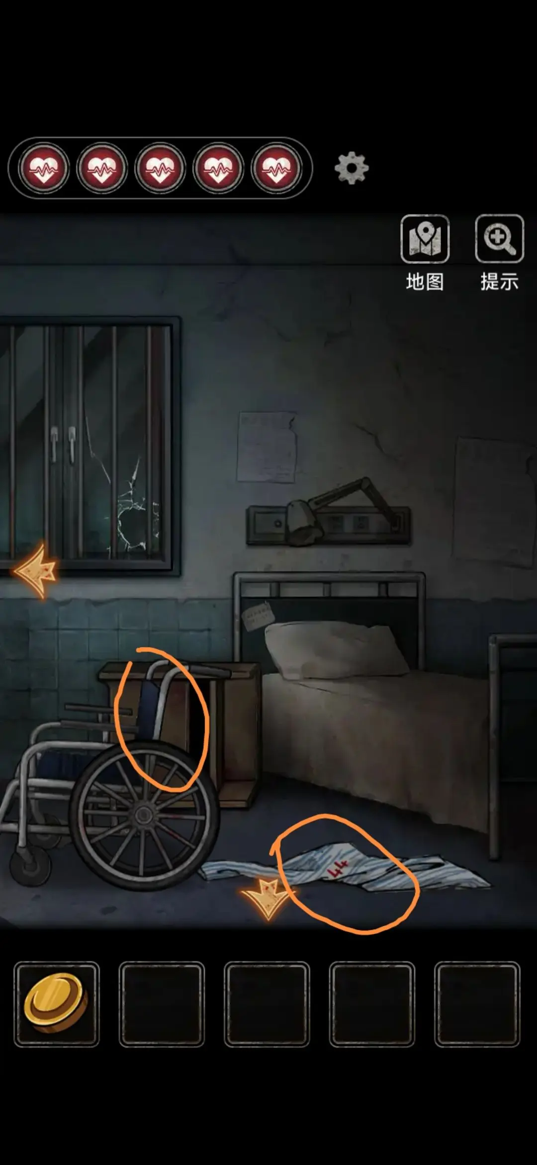 用钥匙解开轮椅的锁,点击推动轮椅,点击衣服捋平后得到房间门钥匙,打开门,进入第一章