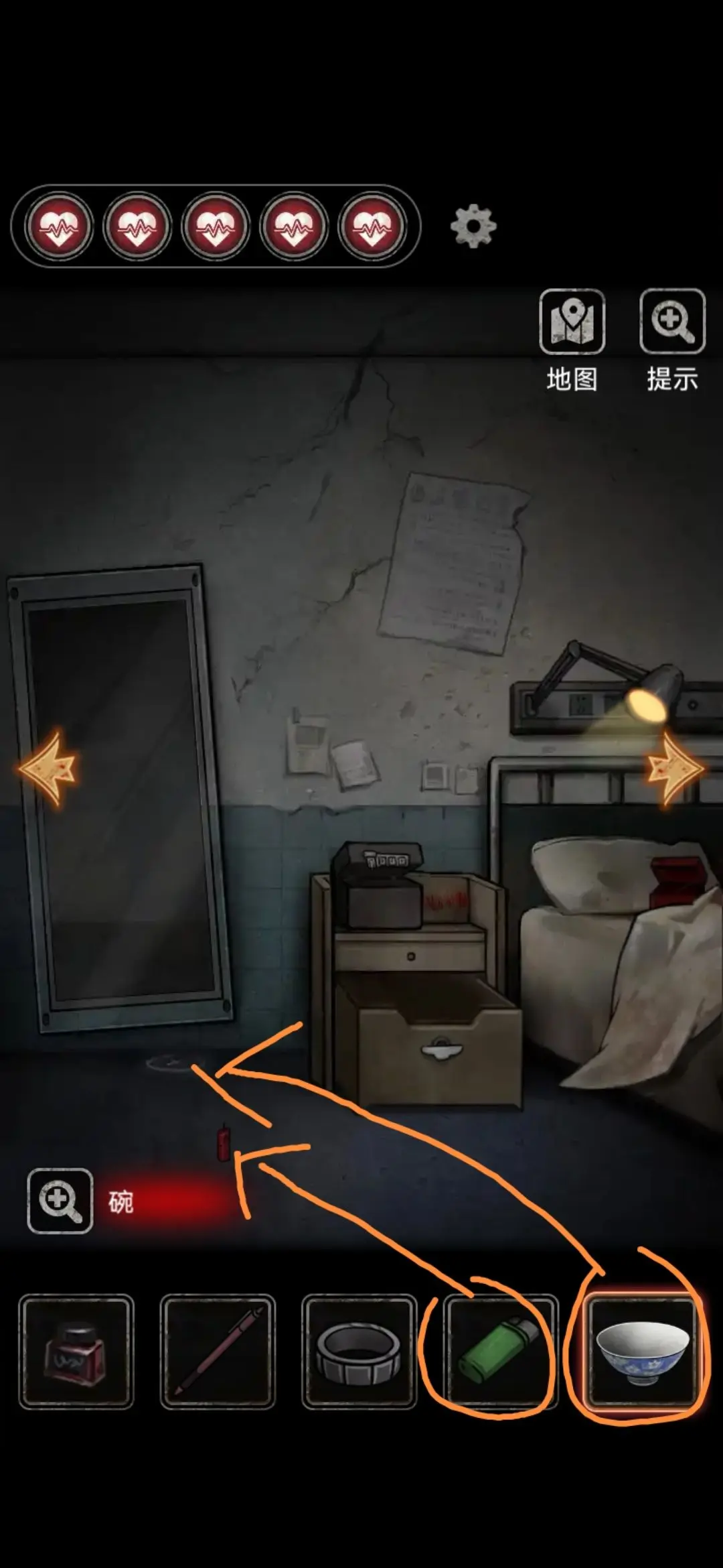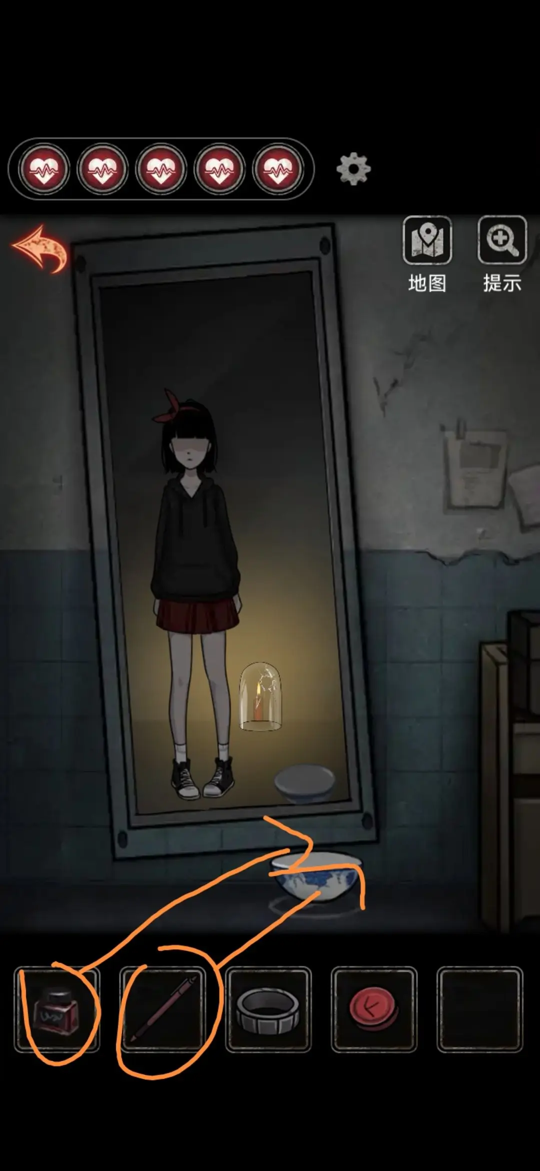 招魂之后镜子上面出现5个符号,根据这些符号进行解谜。
