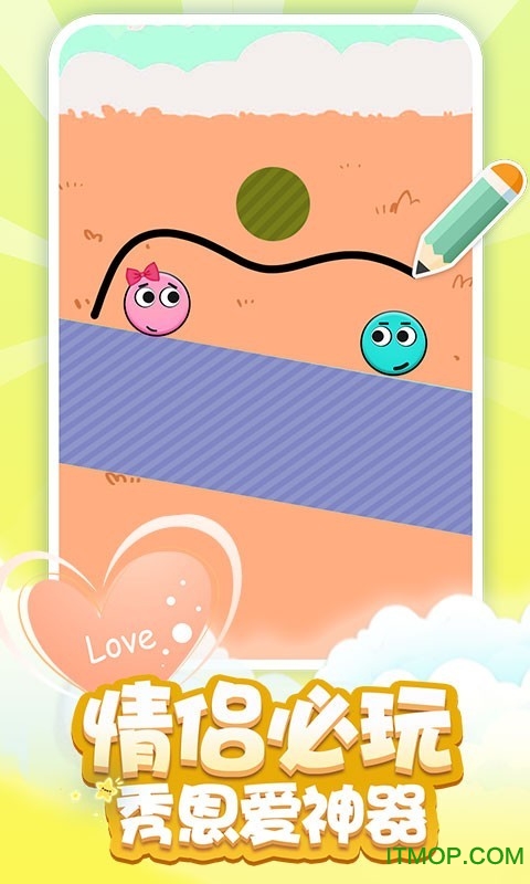 这是一款超甜恋爱主题的休闲 闯关小游戏 ,你需要运用你的智慧让两个球球幸福相遇,确认过眼神,它就是对的球!挑战性强,考验你的想象力和创造力,随时随地都能让你脑洞大开!画风和背景音乐小清新!游戏主角Q萌,满屏粉粉嫩嫩的色调,是恋爱的味道没错了! 画线游戏 的创新玩法,益智又有趣,魔性上瘾的百变关卡设置,你只要享受这种虐心的快感!