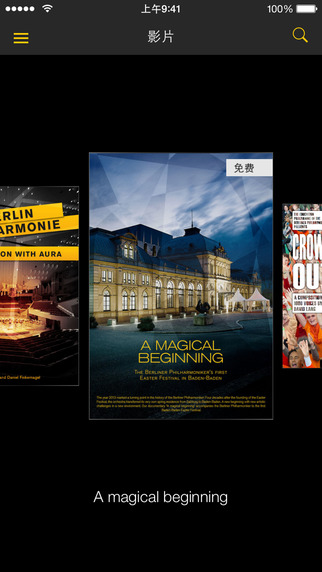 收听收看古典音乐界最优秀的指挥家、独奏家及歌唱家与柏林爱乐乐团合作的音乐会——直播/点播两相宜。知名影像导演在柏林爱乐大厅的视频控制室内倾力打造的数码音乐厅(DCH)。爱乐大厅内安装有七台高清遥控摄像机,外加优异的音频技术,确保聆赏体验原汁原味,扣人心弦。 现在下载app,立即观看西蒙·拉特爵士指挥的贝多芬第四交响曲和马勒第一交响曲,免费哦!