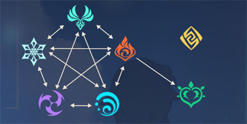 岩元素+冰雷水火:结晶,岩元素同任意元素反应,掉落1个相应的元素护盾,拾取角色就能获得该元素护盾,减免对应元素伤害;