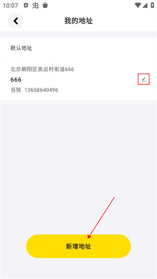 2、可以选择“新增地址”,或者点击旁边铅笔图标修改地址。