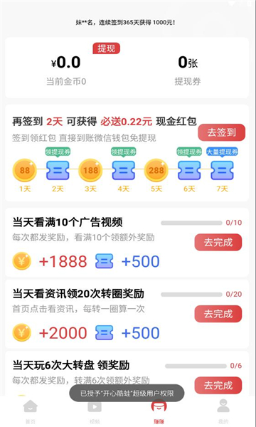 开心酷蛙app是一款可以通过刷资讯,做任务来获得奖励的赚钱平台,这里的资讯任务多,每天都可以来签到,看新闻,还可以邀请新人参与,更多福利等你来,天天都有更新,欢迎前来体验!