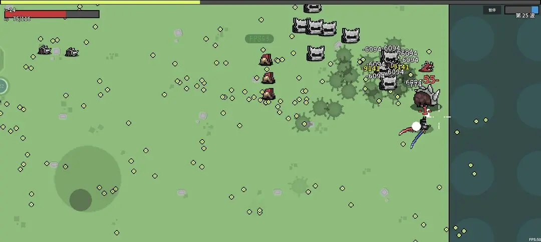 3.本游戏的游戏数值有一种拿脚jio填数值的美感,敌方的触碰伤害和刷新速度以及刷新数量总是能让你防不胜防,稍不留神便会结束游戏。以及到了后15--20关之后,敌方的伤害更是大幅增加,再加上刷怪频率太高了,很容易被困角落围堵杀