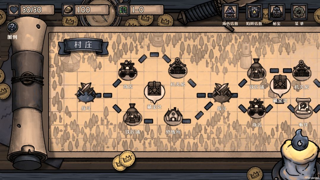 ●商店:可以花费金币购买陷阱或秘宝,以及强化/移除陷阱的功能。