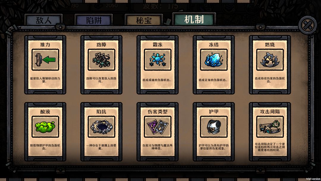 ●陷坑:地面敌人会试图绕过陷坑,飞行敌人则会飞跃陷坑,将敌人推入陷坑会直接消灭敌人。