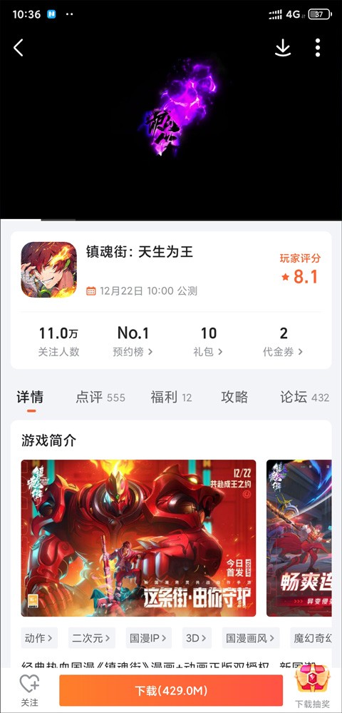 3、同时再往下滑可看到游戏福利,游戏点评以及官方发布的各种最新动态,轻轻松松即可带你全面了解游戏;