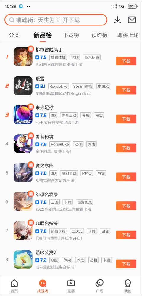 5、并在“找游戏”中提供了下载榜、新品榜、预约榜、即将上线等;