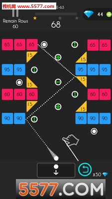 按住屏幕瞄准,将小球弹射到砖块上,突破所有的砖块!玩家需要有战略性的思考,看看怎样才能一次性弹射更多的砖块!