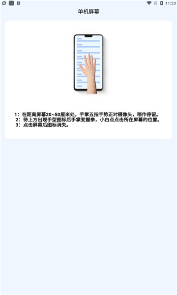 2:待上方出现手型图标后手掌变握拳,小白点点击所在屏幕的位置。